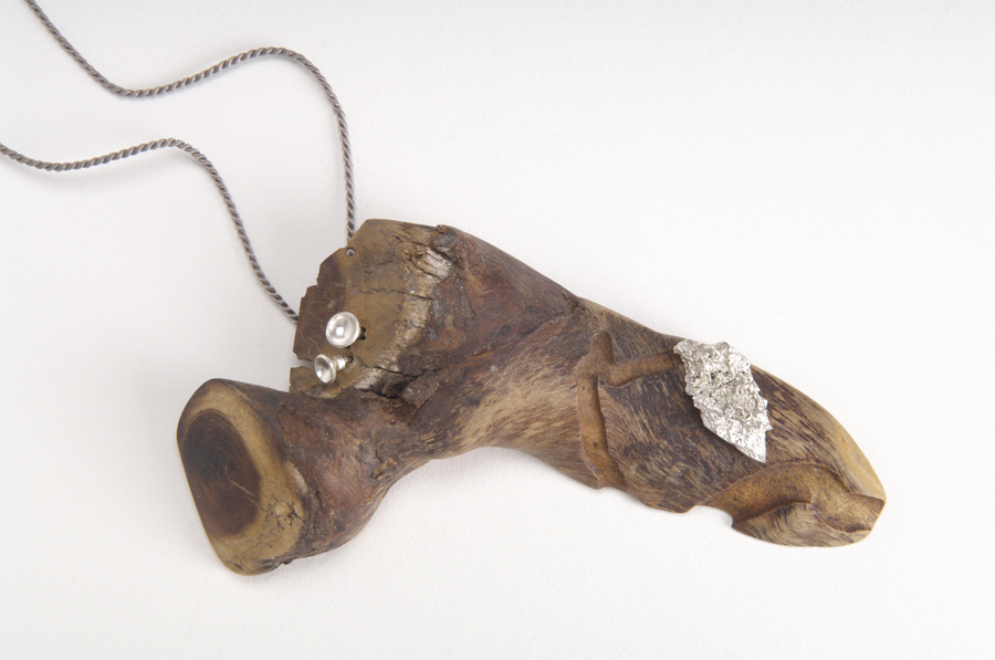 Pendant. 2013. Jam wood, sterling silver, cast sandalwood bark, silk thread. Photo: Victor France